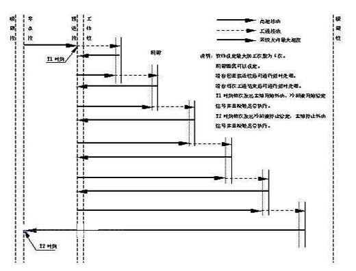 軟件設(shè)定的“互鎖”信號(hào)分為“鎖定對(duì)方”(輸出)信號(hào)和“響應(yīng)鎖定”(輸進(jìn))信號(hào),當(dāng)IMS控制器控制驅(qū)動(dòng)電機(jī)將鉆臺(tái)推進(jìn)至接近中心線的某位置時(shí)(軟件設(shè)定),控制器會(huì)向另外一臺(tái)控制器給出“鎖定對(duì)方”信號(hào)。對(duì)方控制器接受到“響應(yīng)鎖定”信號(hào)后,如正工作在安全區(qū)內(nèi),則正常運(yùn)行;如正在向前推進(jìn)并有可能發(fā)生打刀情況,則執(zhí)行“暫停”動(dòng)作使鉆臺(tái)停留在安全范圍內(nèi)直至“響應(yīng)鎖定”信號(hào)消失。發(fā)出“鎖定對(duì)方”信號(hào)的控制器在所控制的鉆臺(tái)回退至安全范圍后,將“鎖定對(duì)方”信號(hào)取消以便另外一側(cè)鉆臺(tái)的正常運(yùn)行。兩臺(tái)控制器本著“先進(jìn)為主”的原則進(jìn)行互鎖動(dòng)作以保證加工時(shí)的高效率輸出。