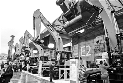 11月23日,觀眾在展覽上參觀挖掘機(jī)。