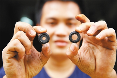 在偶然的機(jī)會下,李盛明尋到了蔡篤君的模具加工廠。“一個年輕的小伙,技術(shù)能比干了幾十年的老師傅們強(qiáng)嗎?”抱著試一試的心態(tài),李盛明讓蔡篤君為他制作幾個傘型齒輪。“沒想到,他做的齒輪和磨邊機(jī)原有零件達(dá)到了嚴(yán)絲合縫的狀態(tài),運(yùn)轉(zhuǎn)起來流暢極了。此后,我就認(rèn)準(zhǔn)了他。”