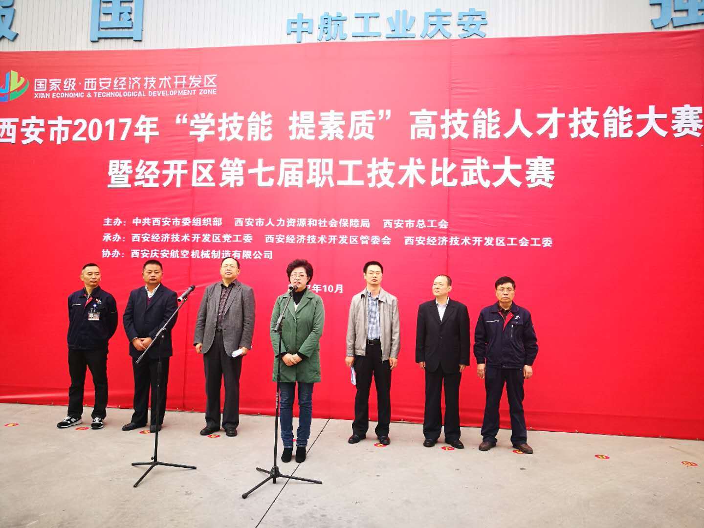 2017年10月21日上午,西安市2017年“學(xué)技能提素質(zhì)”高技能人才技能大賽暨經(jīng)開區(qū)第七屆職工技術(shù)比武大賽在經(jīng)開區(qū)出口加工區(qū)隆重舉行。本次技能大賽由中共西安市委組織部、西安市人力資源和社會保障局、西安市總工會聯(lián)合主辦,西安經(jīng)開區(qū)黨工委、管委會、工會工委承辦,西安慶安航空機械制造有限公司協(xié)辦。市委組織部、市人社局、市總工會、經(jīng)開區(qū)黨工委、管委會、工會工委負責(zé)同志,各區(qū)縣工會、產(chǎn)業(yè)工會、開發(fā)區(qū)工會參賽選手、職工代表共計150余人參加啟動儀式。